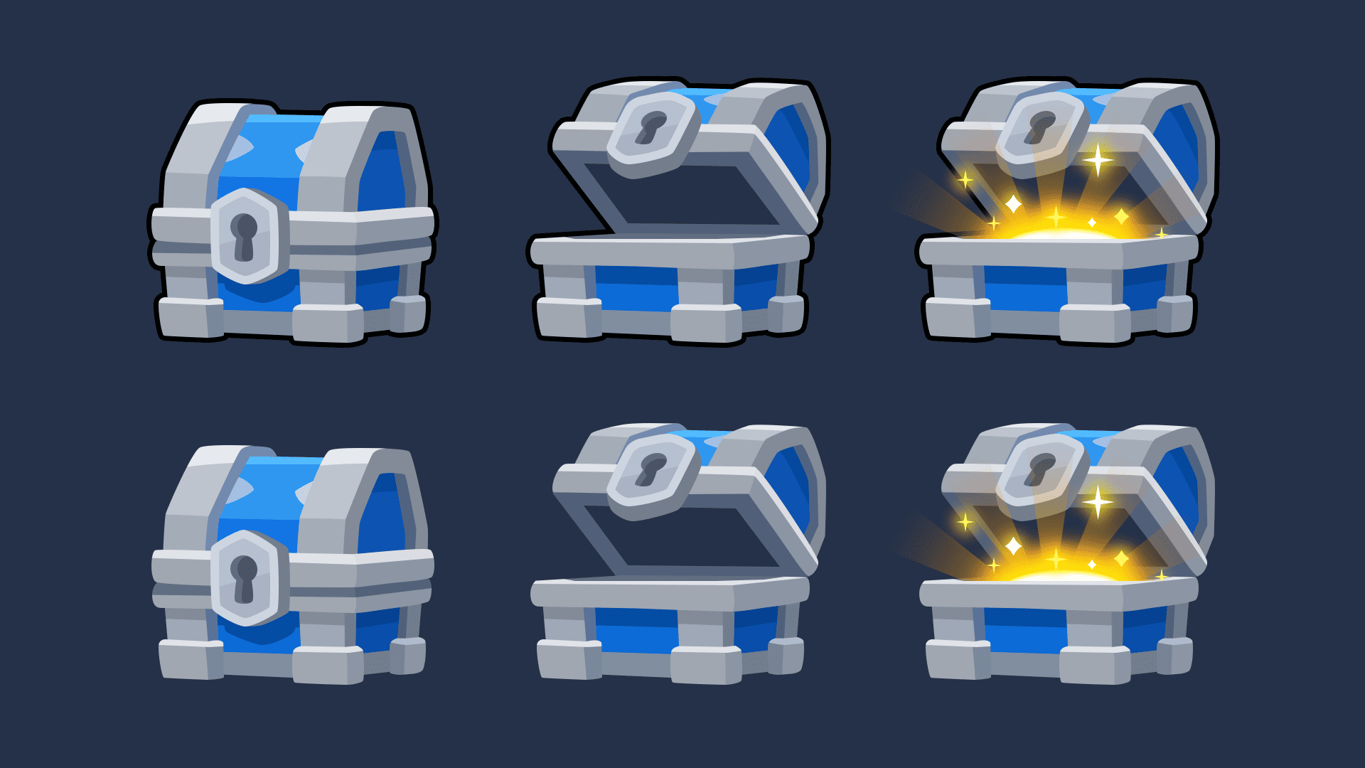This chest includes three visual states, allowing flexible reward presentation from standard rewards to more impactful moments.