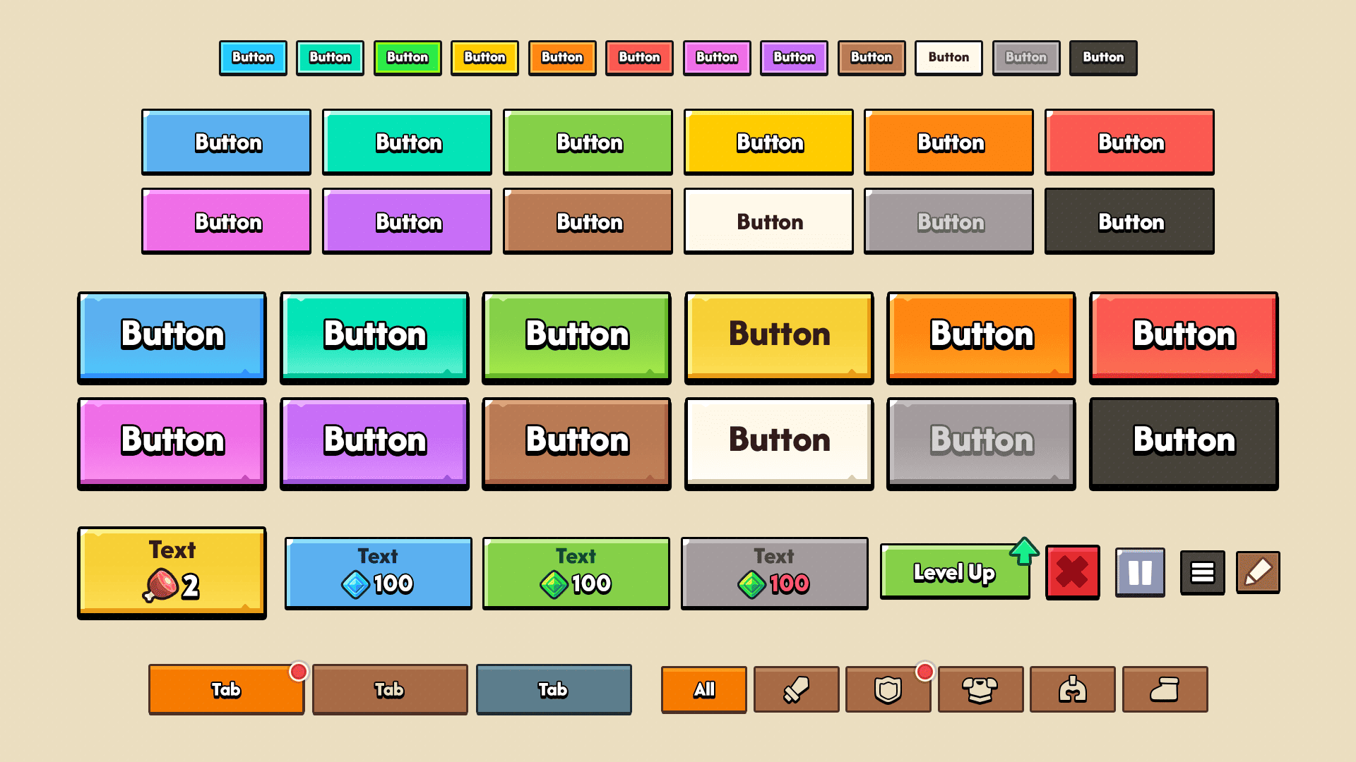 UI PNG is designed with 9-patch slicing in mind, offering flexible UI scaling. Each developer’s implementation may differ, so we recommend exploring how your specific engine handles 9-patch images for optimal results.